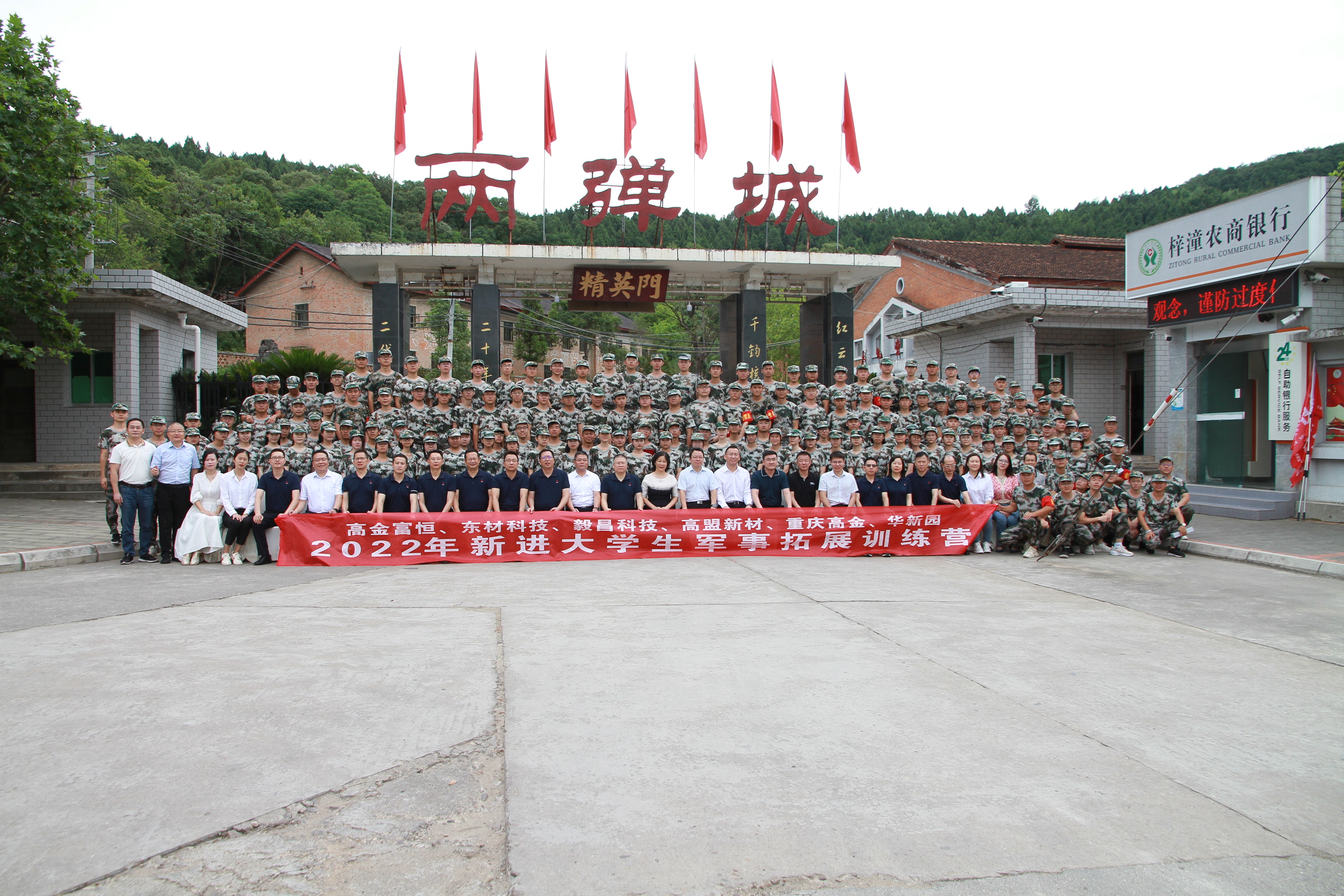 7月12日至17日,高金富恒、東材科技、毅昌科技、高盟新材、重慶高金、華新園2022年新進大學生軍事拓展集訓在綿陽市梓潼縣兩彈城火熱舉行。